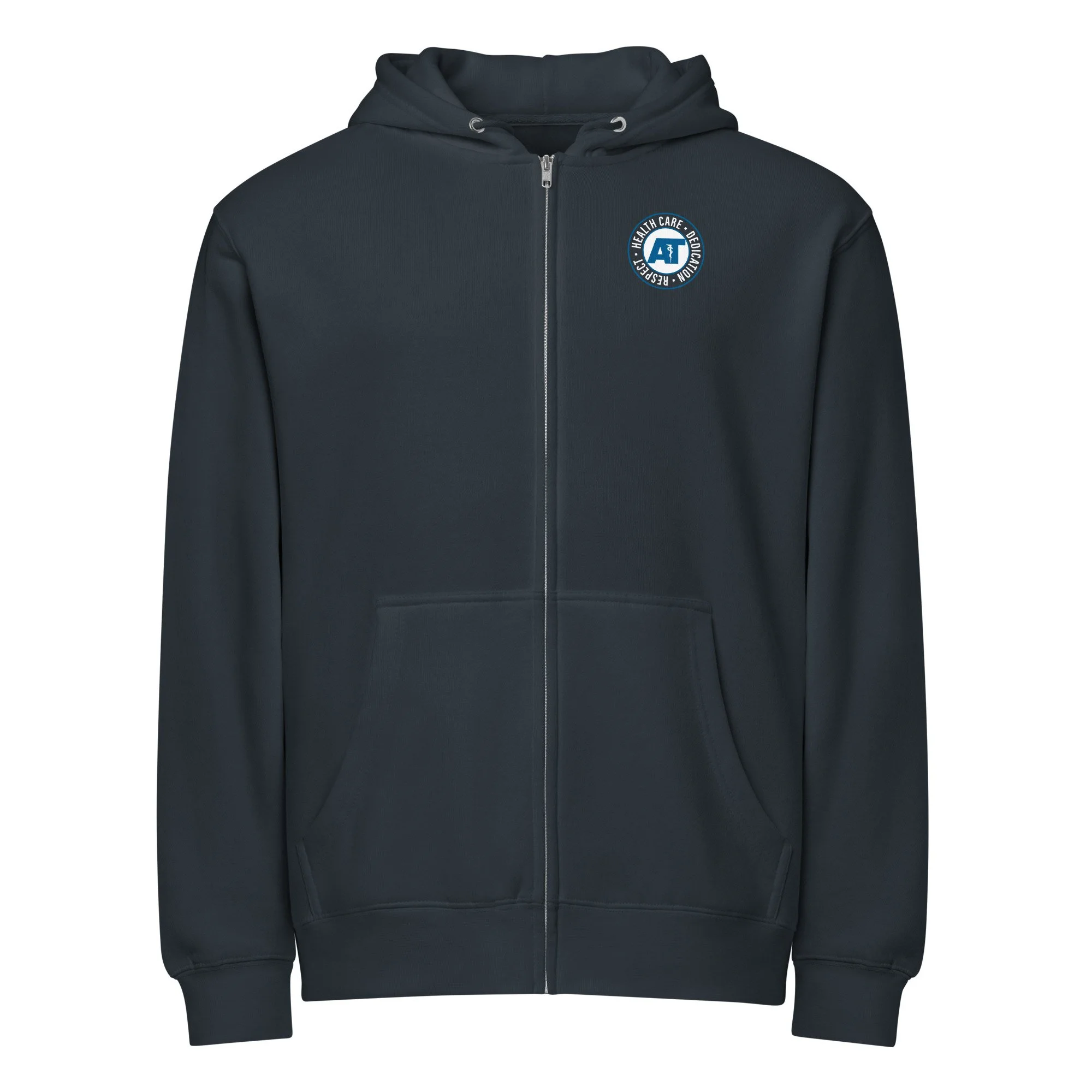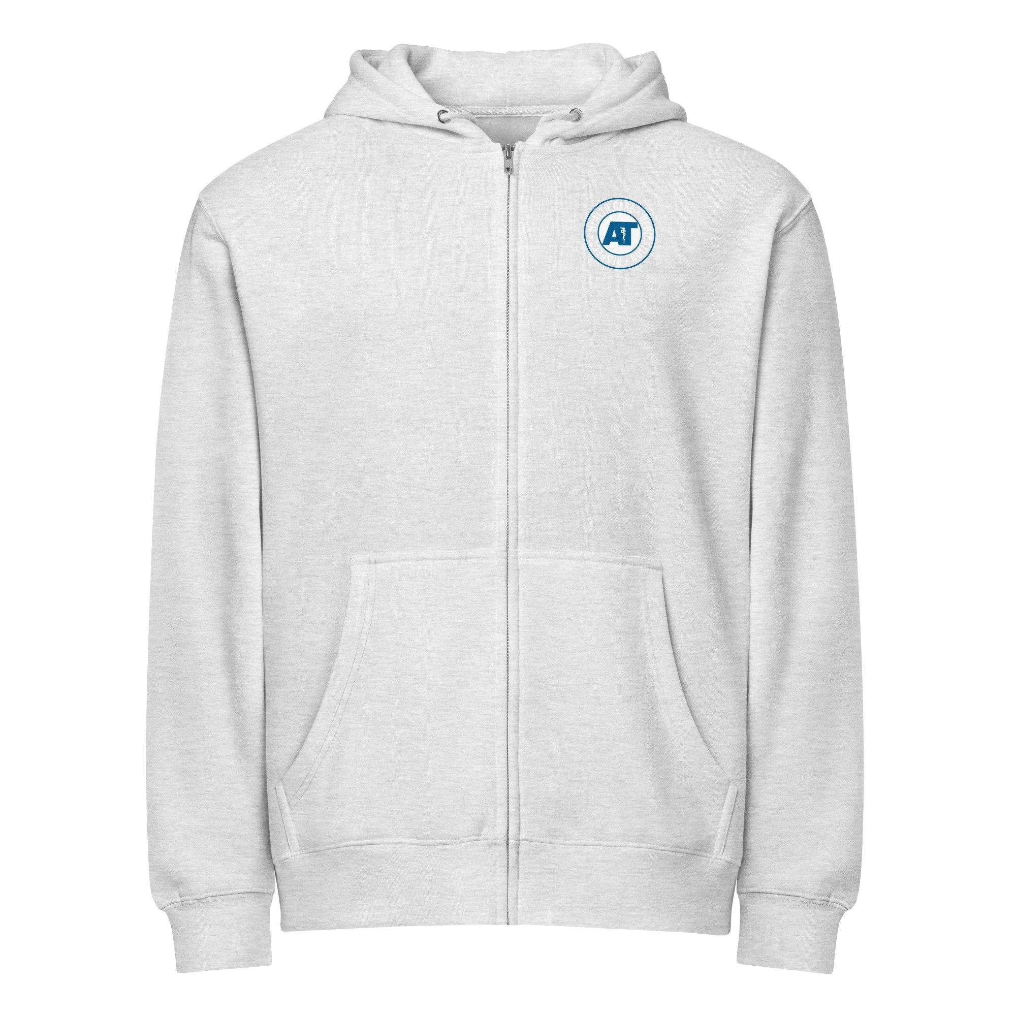AT circle logo screen printed on front and large on back. This zip hoodie is soft, warm, and versatile enough for year-round layering. With its relaxed fit and clean design details, it’s the kind of hoodie you’ll reach for daily—whether you’re on the go or lounging at home.